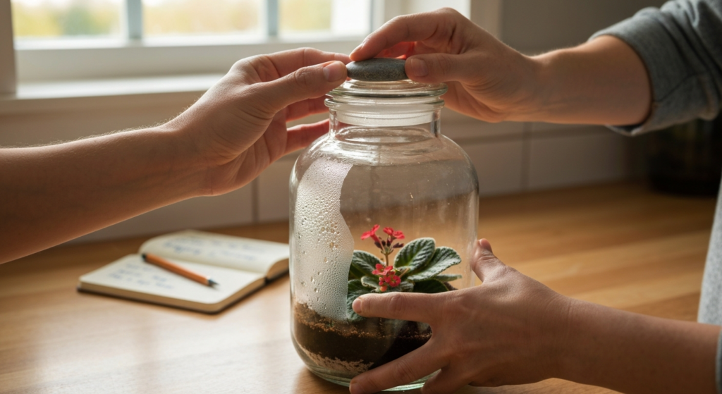 Monitor daily for the first week. Check condensation patterns, look for signs of stress in the plant, and make sure the soil moisture stays consistent. This is when you’ll learn how your specific jar, plant, and location interact.
