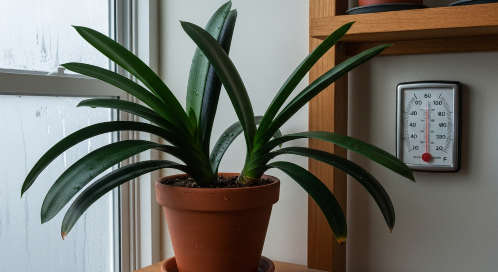 Your Clivia needs temperatures between 40-50°F during its rest period. This range is cool enough to trigger dormancy but not cold enough to damage the plant. The plant can tolerate brief drops to 35°F, but sustained freezing will kill it.