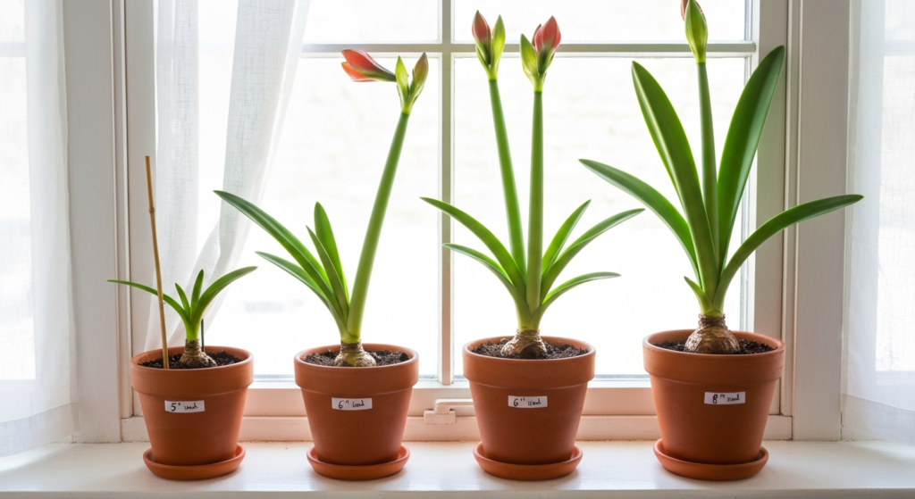 Pot diameter changes more than aesthetics. It impacts root development, moisture levels, and how quickly the bulb pushes up flower stalks.