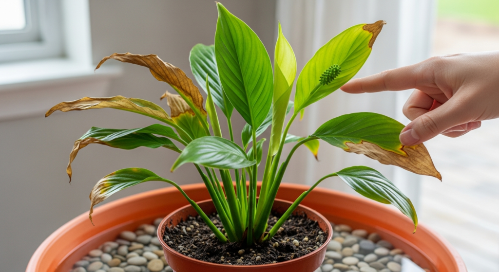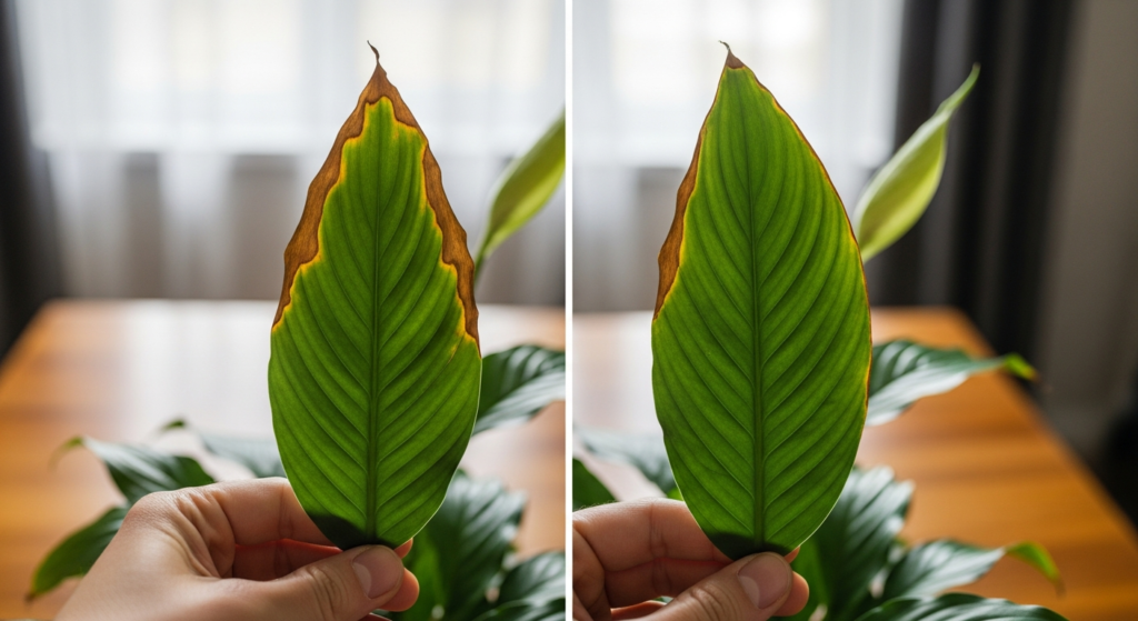 When my peace lily first showed brown tips, I assumed it needed more water. I increased watering, which made things worse. The edges started browning too. That’s when I realized the issue wasn’t simply “not enough water”—it was more complicated.