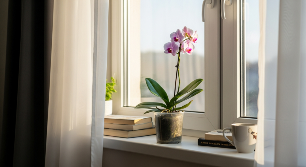 Don’t assume the windowsill is the only option. I’ve found that placing orchids on a small table 2 to 3 feet from a bright window often works better than putting them directly on the sill. This gives them steady brightness without temperature swings from the glass.